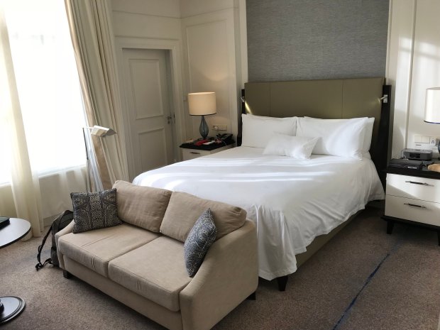 The Waldorf Astoria was Tripadvisor’s #1 hotel in Amsterdam at the time that I booked, and while I don’t trust Tripadvisor all that much, I was at least pretty confident that the #1 hotel in any city is probably going to be halfway decent. Booking this hotel took some doing, since it costs 80,000 Hilton points per night (those 100,000 point bonuses that you can get on various Hilton cards get eaten up pretty fast if you want to use them at top-tier properties). To get four nights here, I combined two weekend night certificates from the Citi Hilton Reserve card plus the 80,000-point sign-up bonuses that Justine and I got on our no-annual-fee Amex Hilton cards.