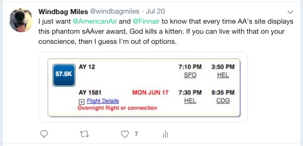 The thing is, over the course of writing this post, I did find an actual seat on the A350 from LAX to Helsinki, but it’s such an anomaly that I’m not even sure if it’s worth writing about. And just because American’s site let me choose that flight and proceed to booking past where the error normally shows up, there’s still the question of whether Finnair would actually ticket the flight. Given their track record, I’m not optimistic.