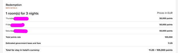 Looking at the way they’re displaying the cost, I’m just begging to be Bonvoyed here. 50,000 points per night for three nights totaling 105,000 points? Good luck… If every other hotel in Paris didn’t cost a million dollars for the dates I need, I’d cancel this in a heartbeat, because I can’t imagine it’s going to go smoothly.