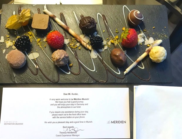 The hotel itself was superb — very large rooms (especially for Europe), great bathroom, good amenities, etc. My room even had a plate of fancy chocolates and strawberries with welcome letter too. For a mid-tier elite! I’ve never received a welcome amenity like that — not even from IHG when I paid to be an Ambassador, and certainly never from Hyatt or Hilton.
